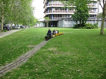 Op 14 september een rijdag met schade aan de rails in de overweg.