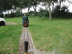Op 10 augustus een stormachtige rijdag. Er werd alleen op de grond gereden; de rest dreigde weg te waaien.