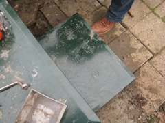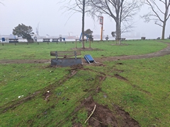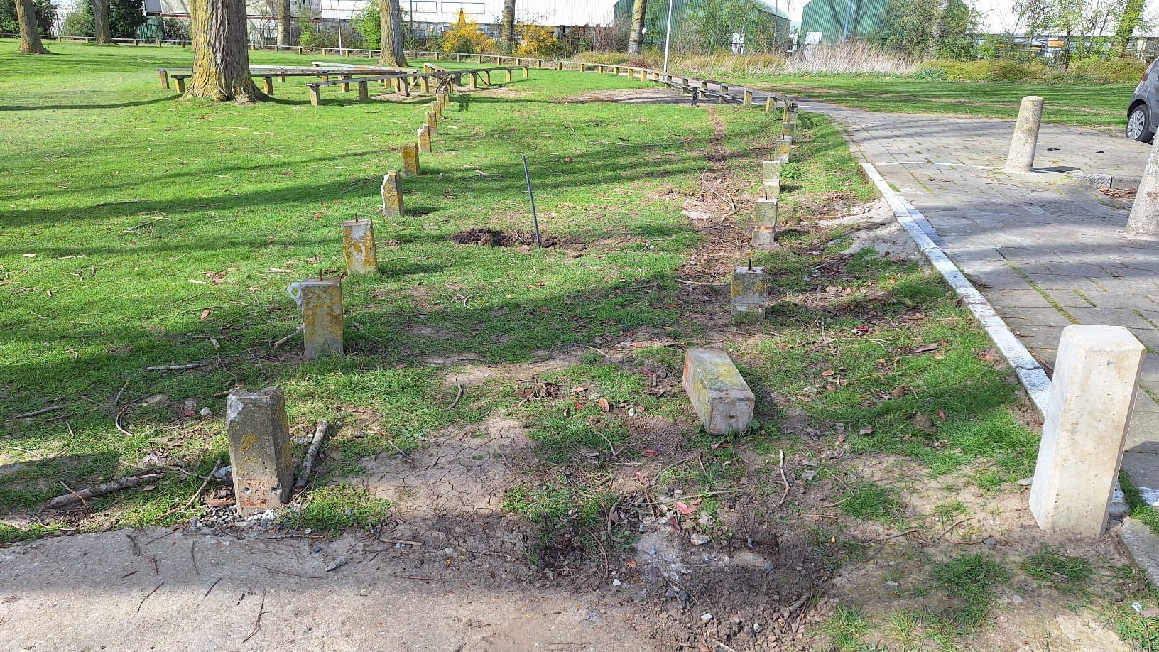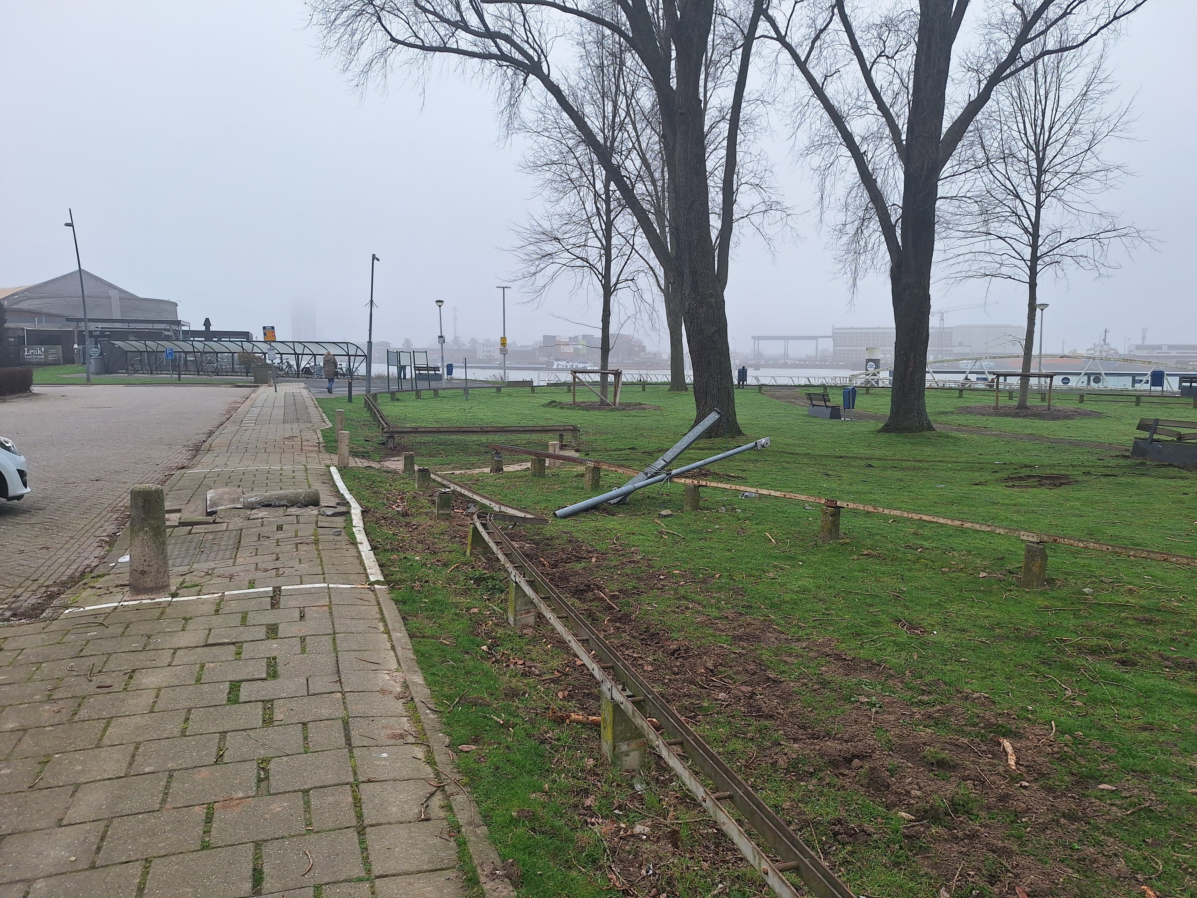 Dit is een serie foto's van de gevolgen van een ernstig auto-ongeval waarbij onze hoge baan zwaar werd beschadigd.