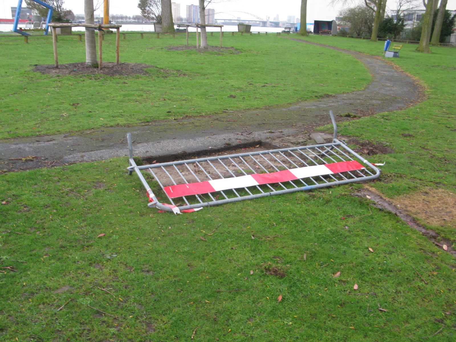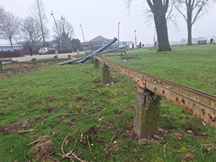 Dit is een serie foto's van de gevolgen van een ernstig auto-ongeval waarbij onze hoge baan zwaar werd beschadigd.